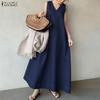 ZANZEA Women Casual Turn Down Collar Summer Sleeveless Long Dress