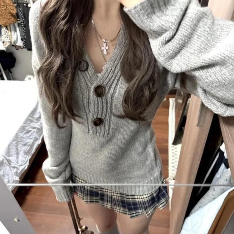 2KWEIRD Damen Grau Langarm Strickpullover Spice Girls Slim Pullover Herbst Winter Neu Bequeme Lässige Pullover