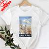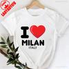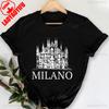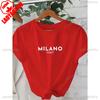 MILANO ITALIEN Buchstabenaufdruck Rundhals-T-Shirt Lässiges Kurzarm-T-Shirt für Frühling & Sommer Damenbekleidung Valentinstag
