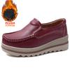 Leather Women Flat Platform Shoes Comfortable Ladies Chunky Sneakers Slip on Luxury Women Loafers Mother Shoes Zapatillas Mujer
