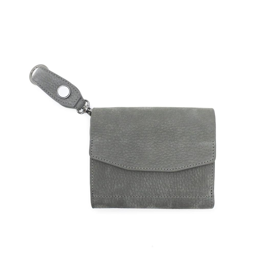 CIE FOLK MIDDLE WALLET GRAY Genuine Leather Nubuck Tri-fold Wallet with Hook and Loop Closure and Reflective Design, Multi-Pocket, Box-Shaped Coin