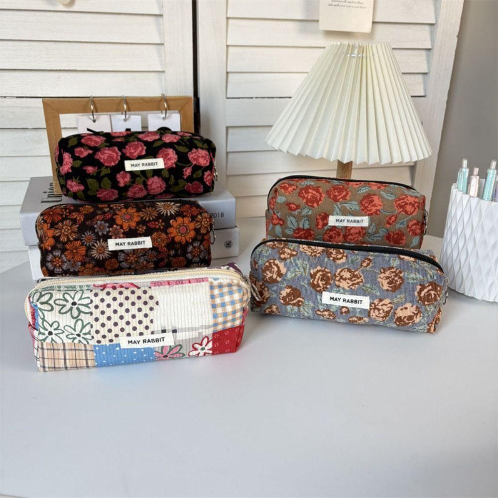 Floral Print Stationery Bag Corduroy Pencil Case Gifts Cosmetics Storage Bags Student