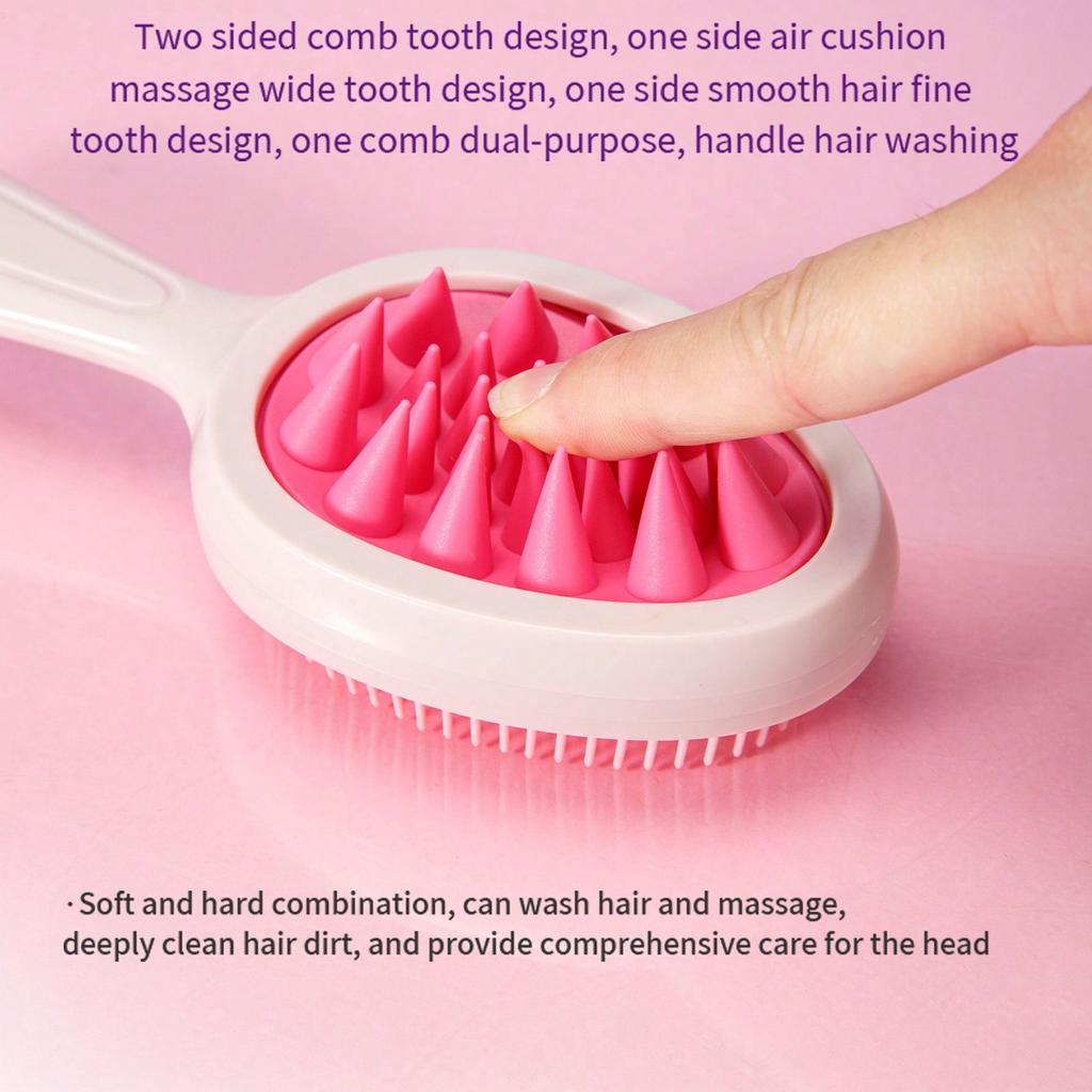 2-in-1 Entwirrbürste – Kopfhautmassage Doppelzweck-Finishing-Kamm mit langem Griff für Nass- und Trockenanwendung, Doppelzahn-Design