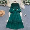 Frühling Herbst Damen Elegant Laternenärmel Spitze Patchwork Miyake Robe Übergroß Locker Lang Maxi Urlaubs Party Kleider