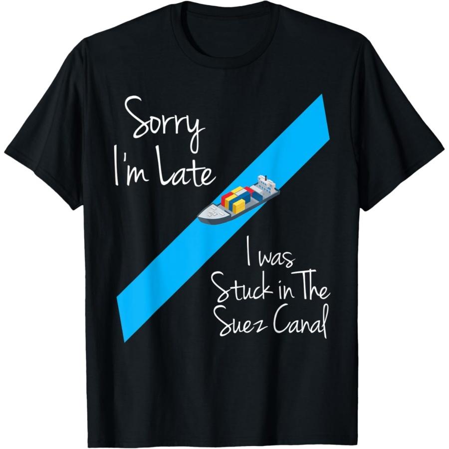 Entschuldigung, ich bin spät. Festgefahren im Suezkanal. Lustiges Schiffs-Humor-T-Shirt
