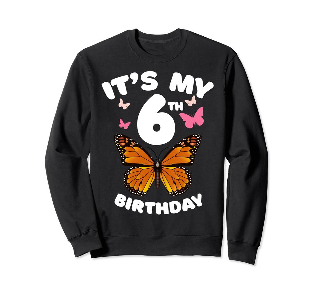 Kids Butterfly Girls and Boys My 6th Birthday Sweatshirt - - It's