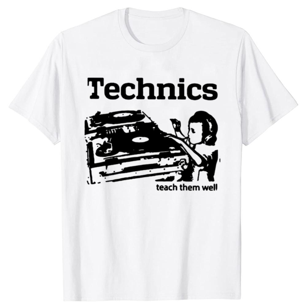 Lustige DJ Technics Teach Them Well Grafik T-Shirts Herren Damenmode Lässiges T-Shirt 100% Baumwolle Lockeres Oversized T-Shirt