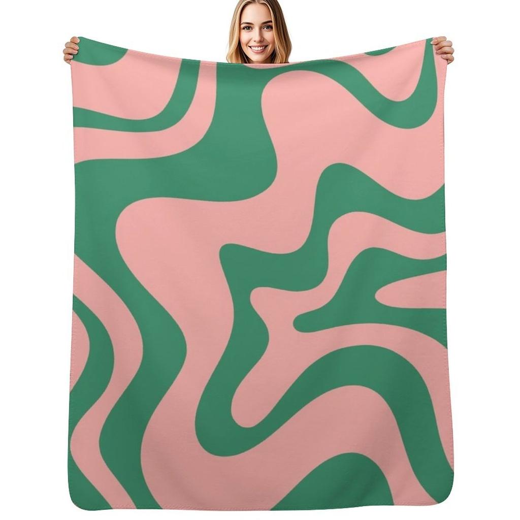 Flüssiger Wirbel Zeitgenössisches Abstraktes Muster in Rosa und Grün Tagesdecke Bettüberwurf Sofaüberwurf Strand Dünne Decken