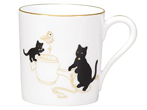 Okura Pottery Black Cat and Child - Auspicious Tale - Mug #2 "Uchide no Kozuchi" (Lucky Mallet) Approx. 320cc Made in Japan 107C/5401-2