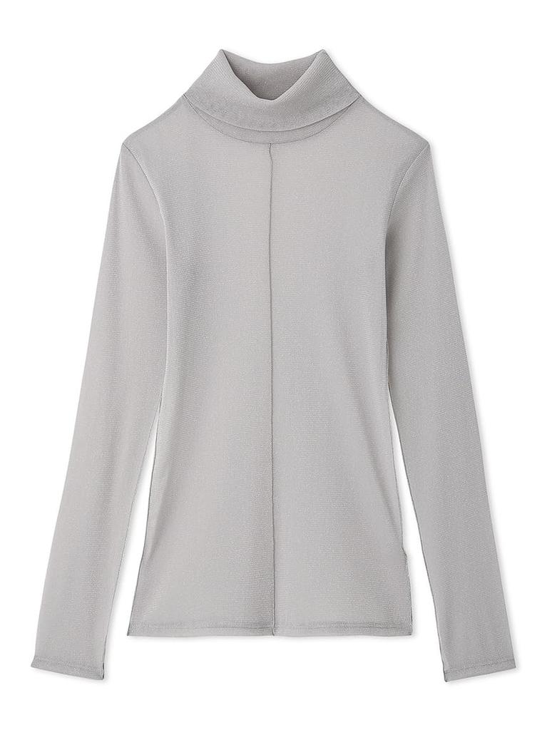 FRAY I.D. Sheer Lame Tulle Turtleneck Top, FWCT244217, Women's, GRY