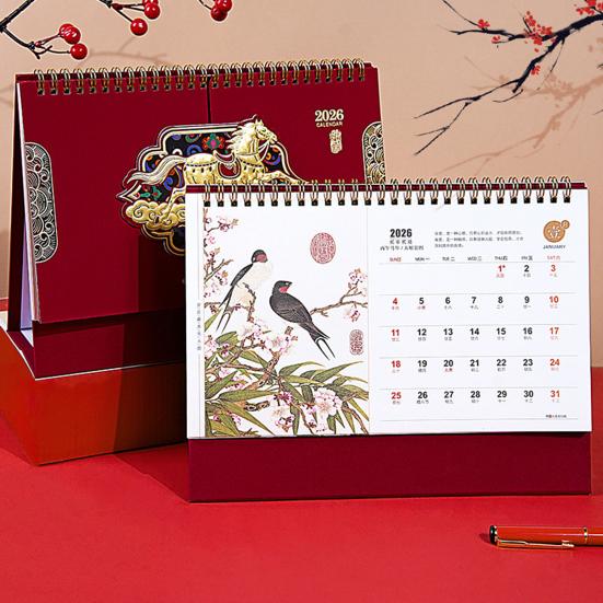 New Year Calendar 2026 Chinese Style Desktop Calendar with Golden Horse Auspicious Design Practical Office
