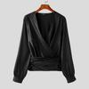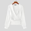 INCERUN Herren Deep V-Ausschnitt Vorne gekreuzt Einfarbig Bandage 70er Jahre Retro Tops Partyhemden