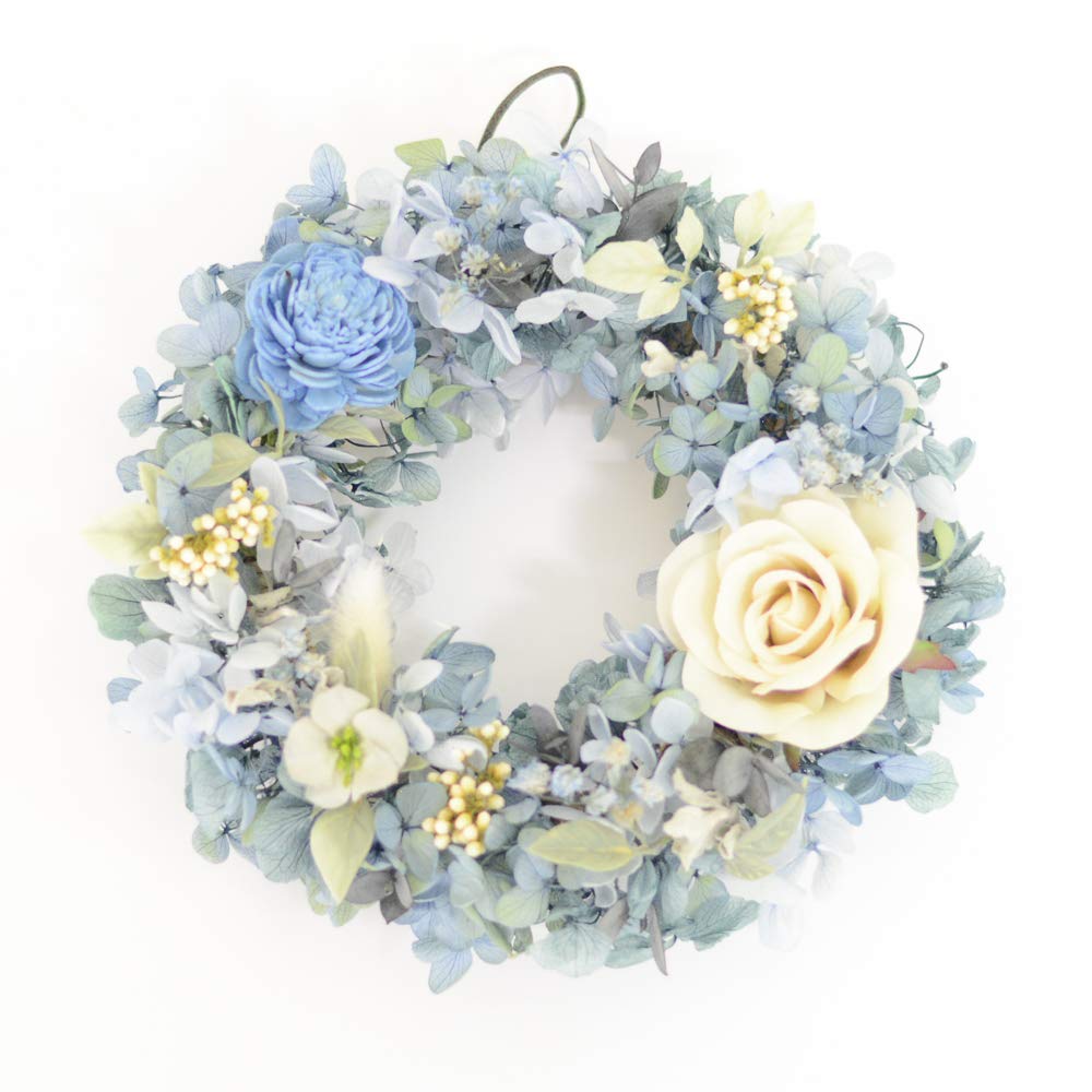 Lulus Pudelblaue Rosenkranz, Naturkranz mit konservierten Blumen, Größe: Ca.. 180mm B x 50mm H x 180mm H, Puderblau, Lulu's-1058
