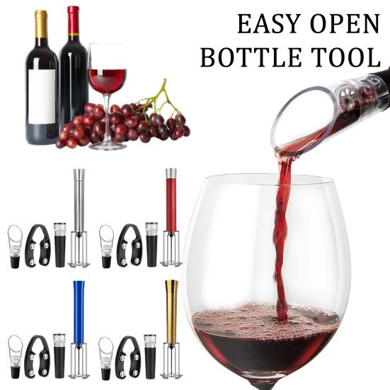 4Stk/Set Flaschenöffner 4-in-1 Luftpumpe Drucköffner Folienschneider Aufblasbarer Ausgießer Vakuumverschluss Weinzubehör