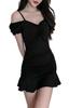 Allegra K Women's Elegant Puff Sleeve Mesh Bodycon Dress with Lace-Up Detail, Black, Size S