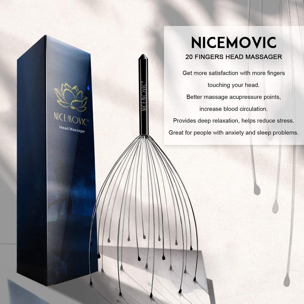 NICEMOVIC 2er-Pack Kopfmassagegerät Kopfhautkratzer mit 20 Fingern für Kopf- und Körperentspannung (Schwarz & Schwarz)