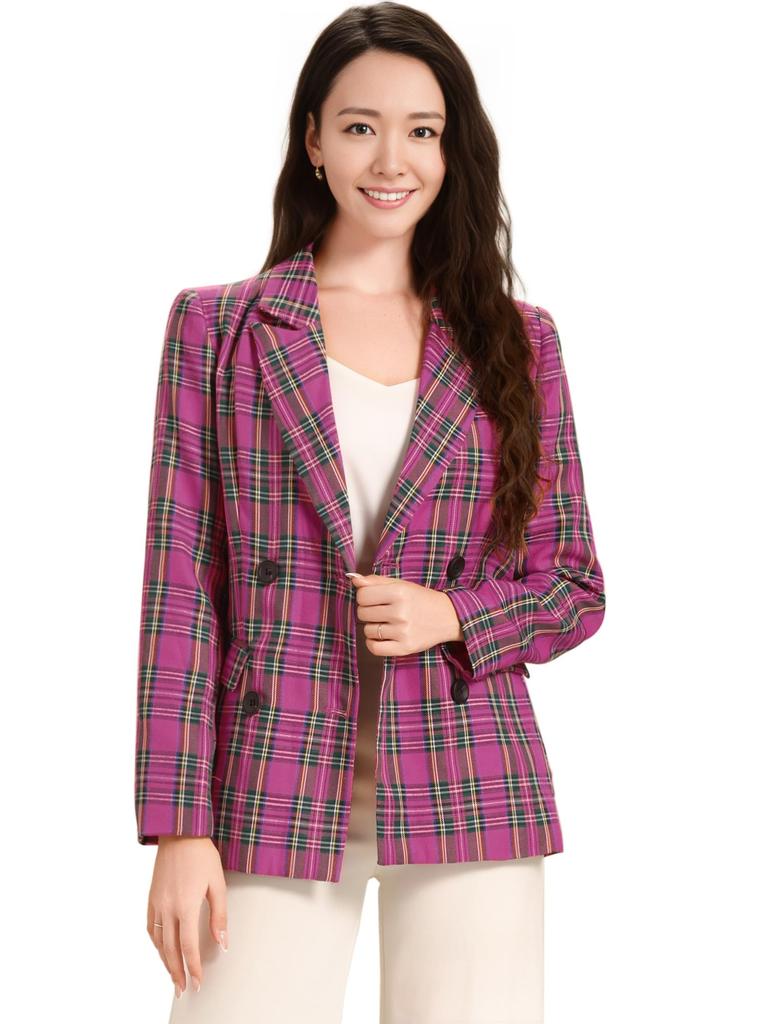 Allegra K Christmas Checkered Jacket, Tailored Blazer, Outerwear for Spring/Autumn, Office Casual, Women's, Hot Pink, Size S