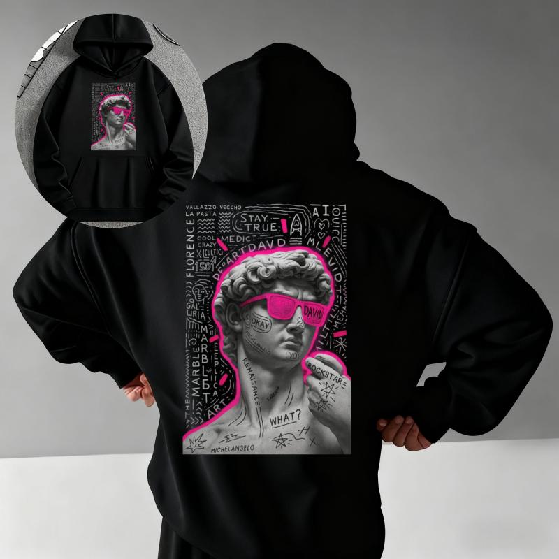 2025 Herbst und Winter Lässig Locker 100% Baumwolle Bedruckter Pullover Hoodie Klassisch David Kunstaufdruck Mode Sommer Herren Übergröße Y2K