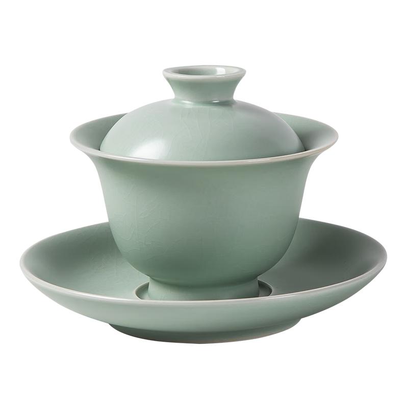 Ru Ware Ceramic Gaiwan Tea Set with Hand-Painted Blue Lines