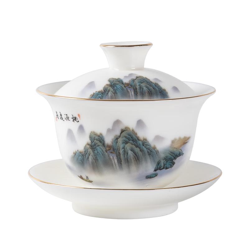 Taoyuan Yiju Goldinlay Weißporzellan Sancai Gaiwan