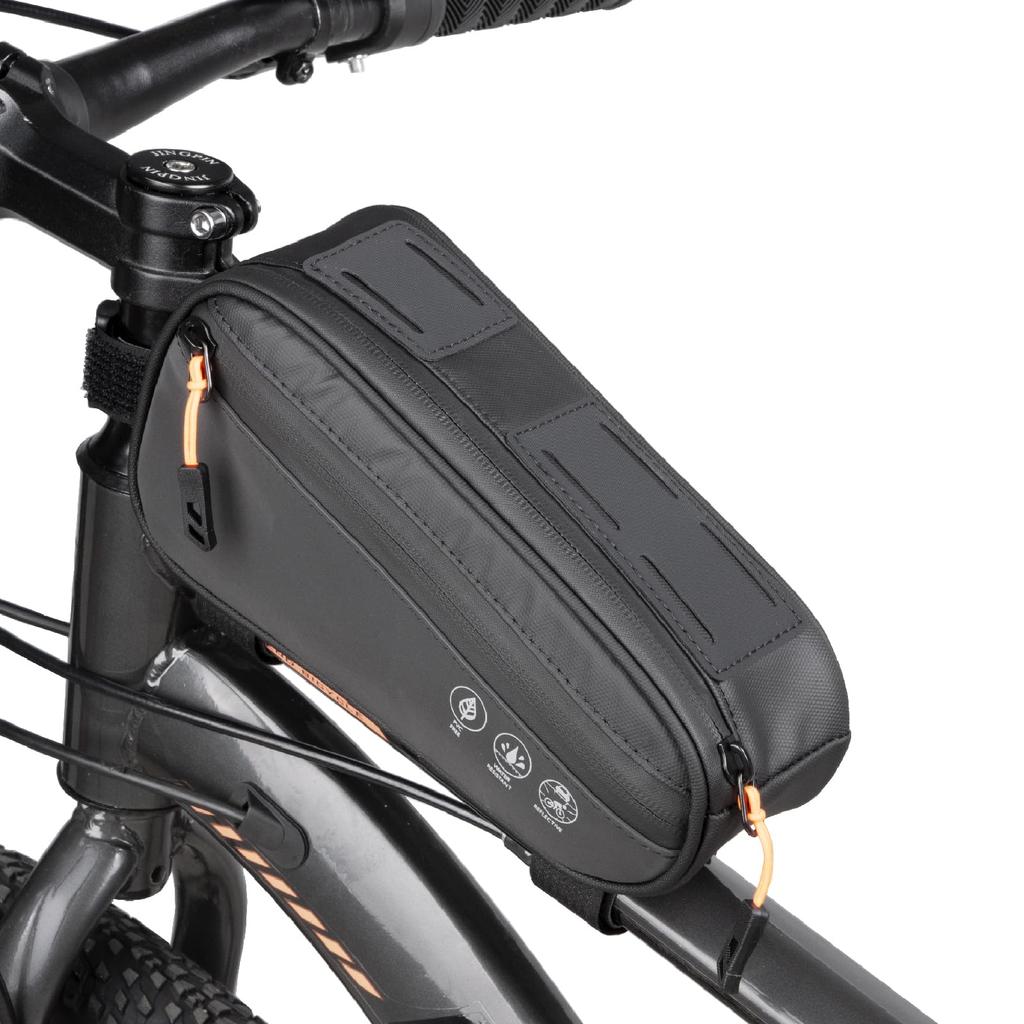 AKEIE Top Tube Bag with Strap, Bicycle Frame Bag, Large Capacity 1.2L, Water Resistant, Water Repellent, Reflective, Easy Installation, Black