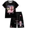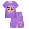 KPOP Mädchen T-Shirt und Hosen Set, Demon Slayer Cartoon, Zweiteiliges Kurzarm- und Shorts-Set für große Kinder