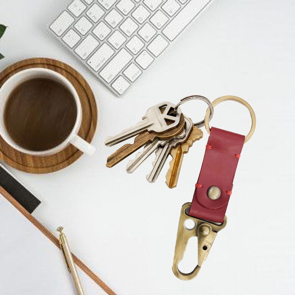 RSINC Full Grain Handmade Leather Keychain | Metal Fittings | Brass Finish Red B0DSW8KJ6X