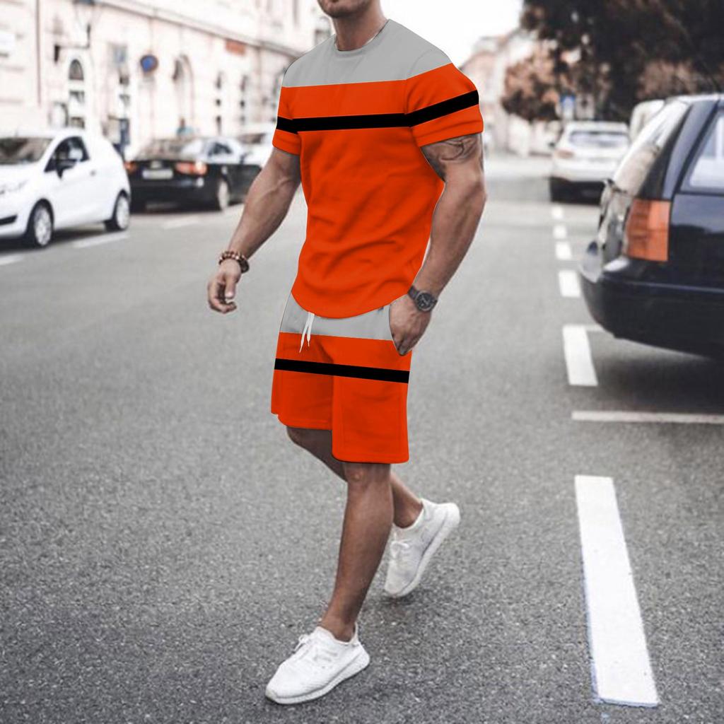 Herren Frühling und Sommer Lässig Sportlich Atmungsaktiv Schweißabsorbierend Patchwork Bedruckt Kurzarm und Shorts Zweiteiler