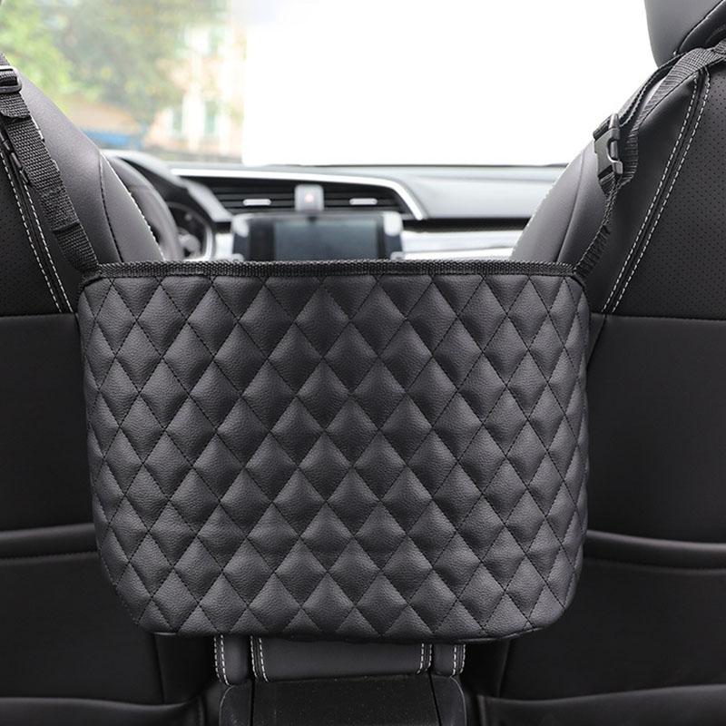Leather Car Seat Organizer with Multi-Pocket Storage Net Hanging Car Storage Bag for Organizing Travel Essentials