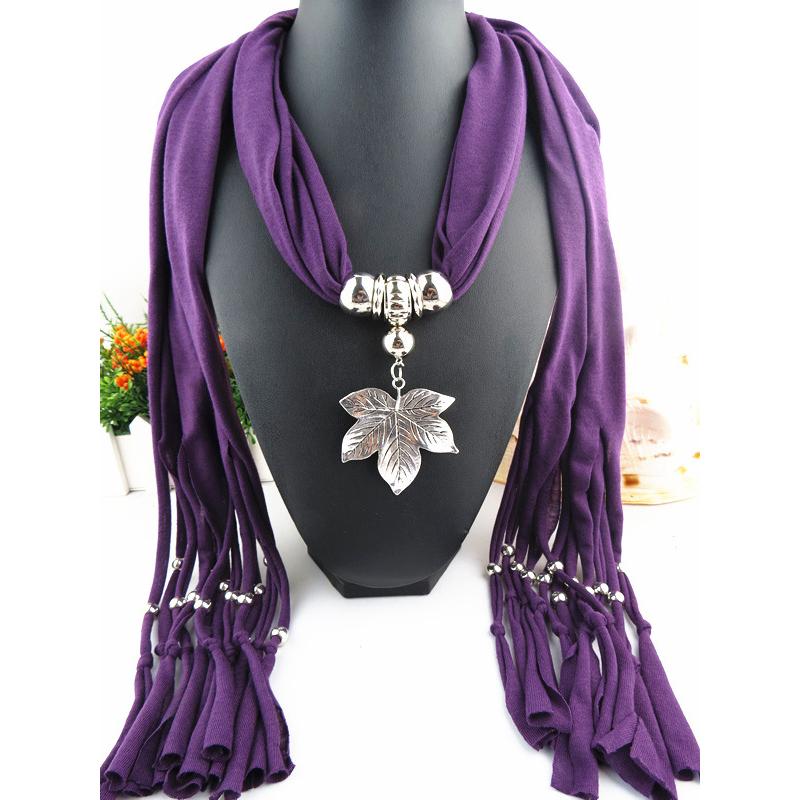 Eleganter Polyester-Infinity-Schal mit Blattanhänger & Quasten – Damen Modischer einfarbiger Halswickel