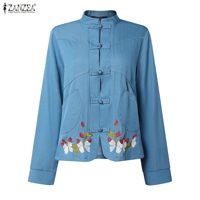 ZANZEA Women Casual Stand Collar Long Sleeve Floral Embroidery Blouse