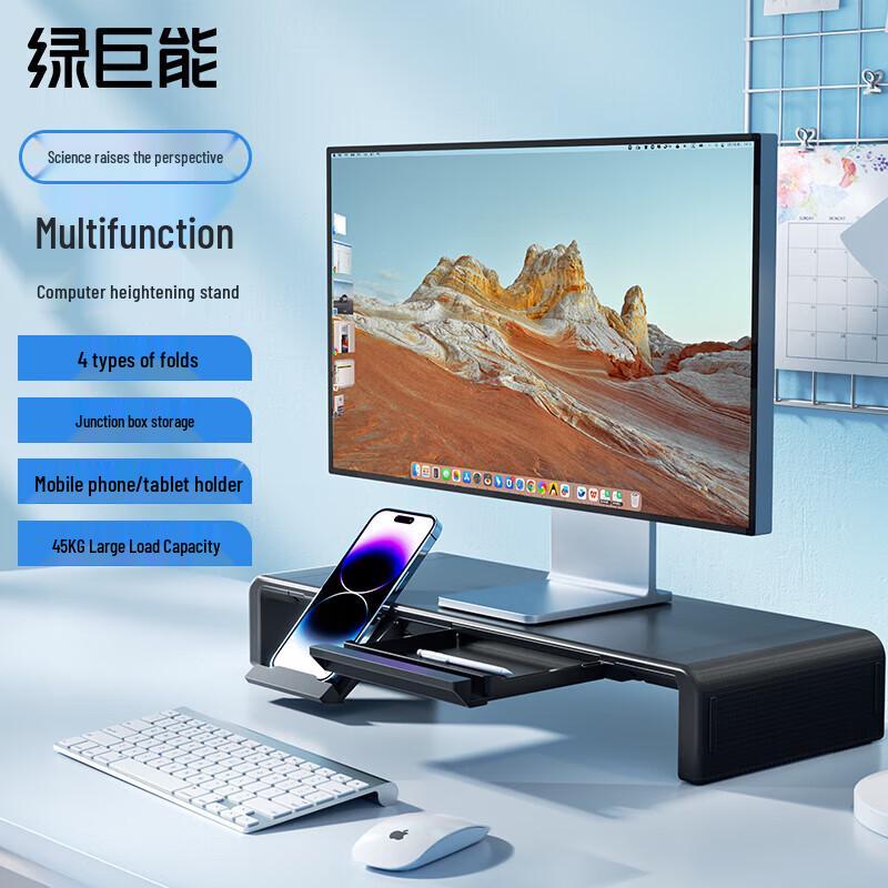 llano Q5 Adjustable Monitor Stand with Storage Drawer