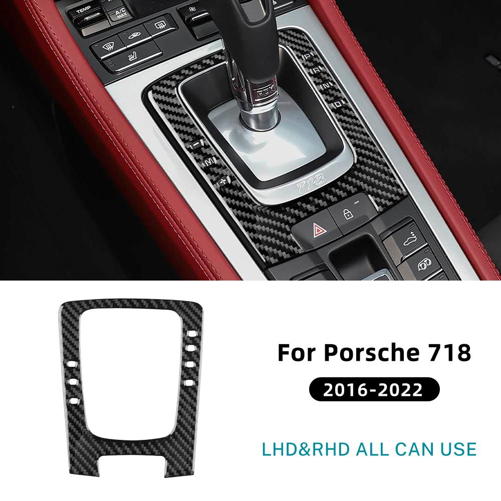 Real Soft Carbon Fiber Sticker For Porsche 718 2016 2017 2018 2019 2020 2021 2022 LHD RHD Car Gear Shift Panel Frame Trim
