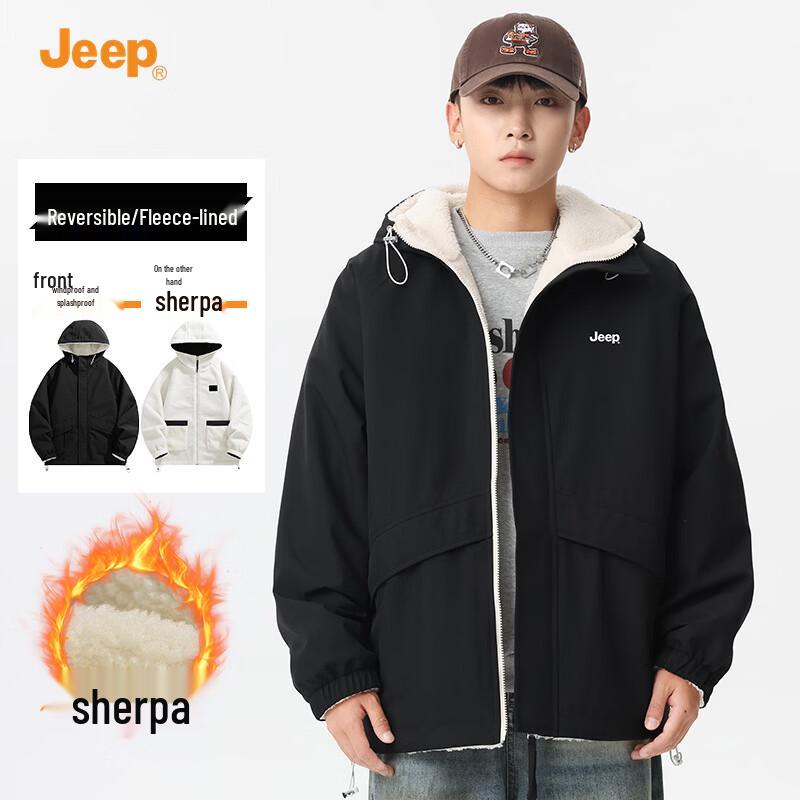 JEEP Men's Reversible Hooded Lamb Fleece Winter Jacket