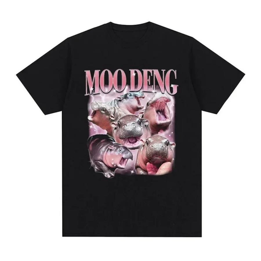 Moo Deng Women's T-shirt Hippo Funny Expression Pack Retro Fashion Street Trend Women Clothing Graphic T Shirts Harajuku Y2K Top