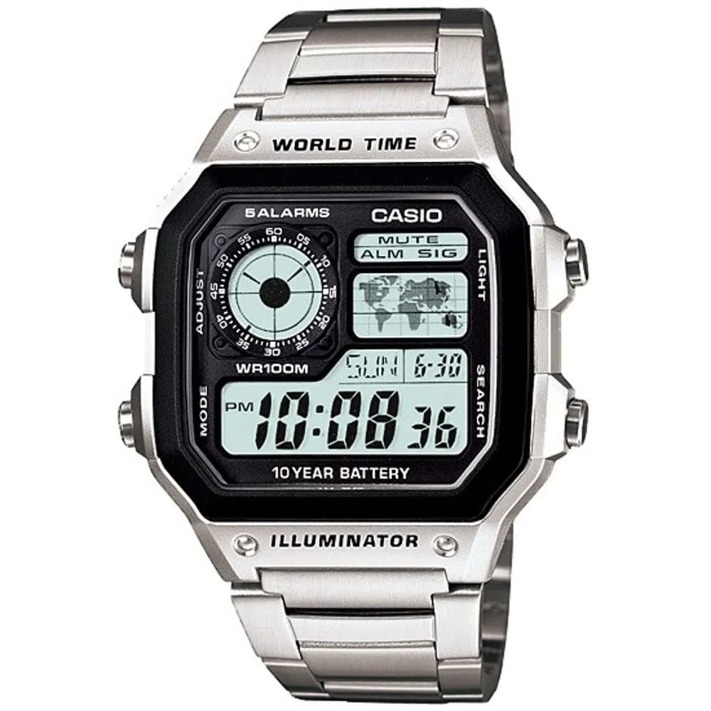 Casio Digital World Time Watch with a Bracelet Men's AE-1200WHD-1AVDE, Multicolor,