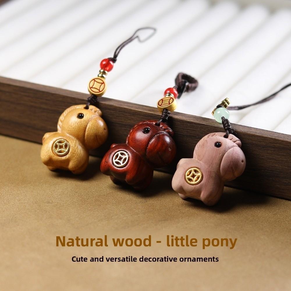 Tierkreiszeichen Pferd Schlüsselanhänger Sandelholz Chinesischer Stil Schlüsselring Niedlich Holz Handykette Unisex