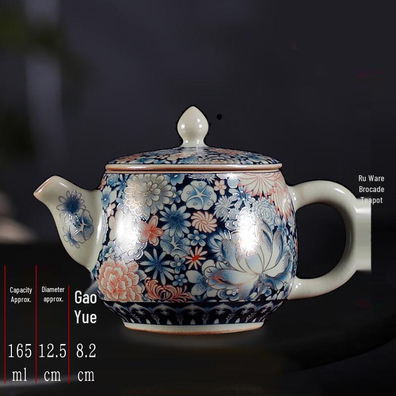 Tianqing Ru Ware Blue & White Floral Ceramic Teapot