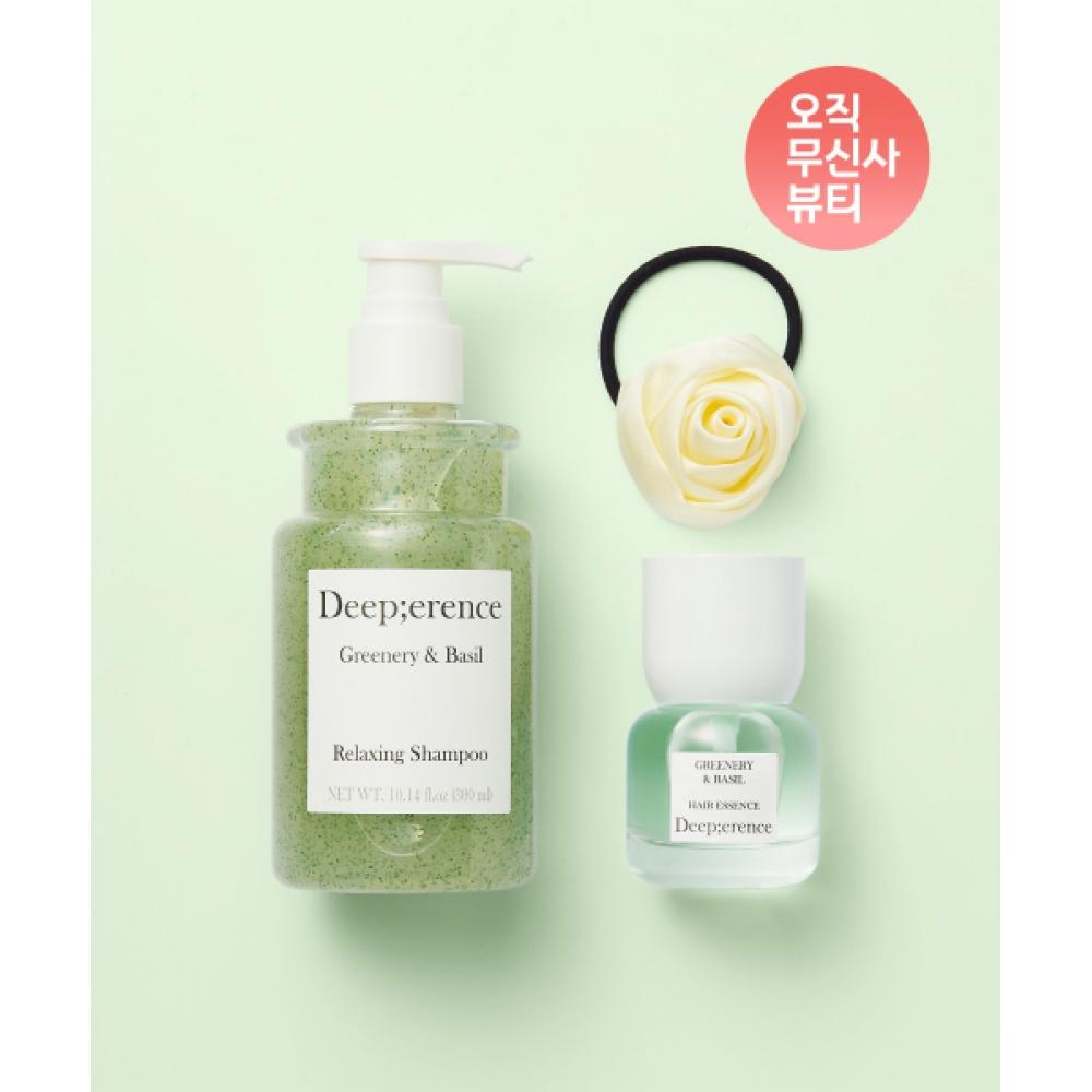 Deeperence [greenery Basil Line Free Shopping Bag] Perfume Hair Shampoo 300ml + Perfume Hair Essence 30ml + Rose Hair Tie