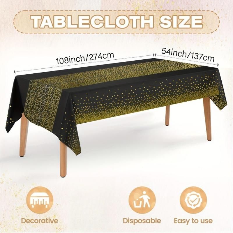 Luxuriöse PVC-Tischdecke in Übergröße - Schwarzgold Pailletten mit goldenen Punkten, ein Muss für die Partydekoration