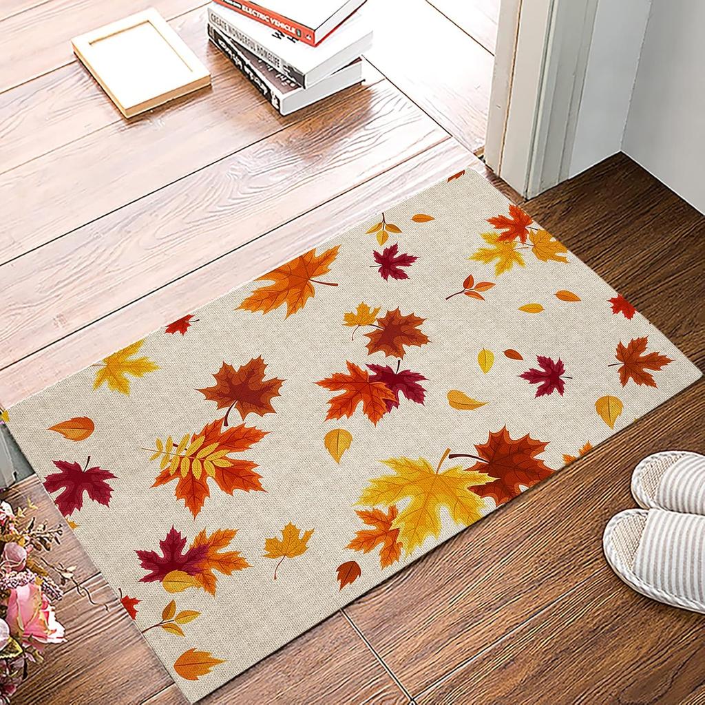 VIKAMA Autumn Harvest Pumpkin Maple Leaf Absorbent Doormat Indoor Outdoor Non-slip Entrance Small Rugs Home Decoration