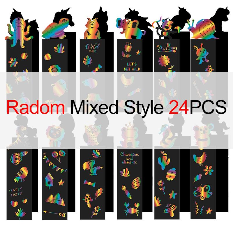 24 STÜCKE Zufällig Gemischtes Rubbel-Lesezeichen-Set Schüler DIY Schreibwaren Bunte Rubbelpapiere Festival Handgemachte DIY Dekorationen ZYF