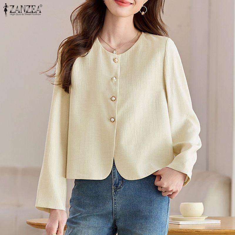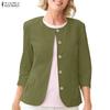 ZANZEA Damen Lässig Rundhals Einfarbig Locker Langarm Bluse