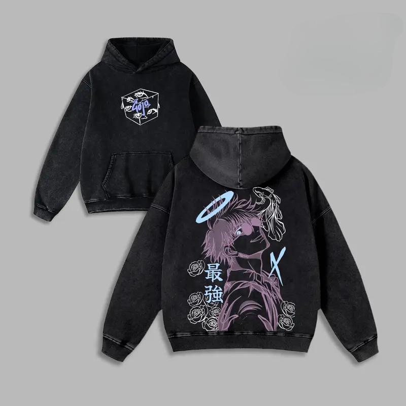 Jujutsu Kaisen Anime Clothing Gojo Satoru Graphic Hooded Men Women Casual Hoodies Washed Cotton Sweatshirt Harajuku Streetwear