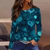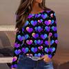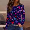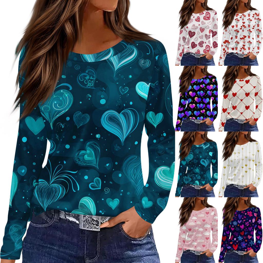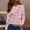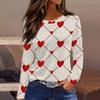 Damen Modisches Langarm-Rundhals-Oberteil mit Schlitzsaum und Valentinstag-Herzprint