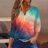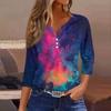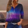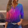 Damen T-Shirt mit Aufdruck, Knopfleiste, 3/4-Ärmel, modisch für den Alltag und das Wochenende, Basic, V-Ausschnitt, normales Oberteil