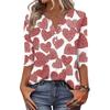 Damen T-Shirt mit Aufdruck, Knopfleiste, 3/4-Ärmel, für den Alltag, Wochenendmode, Basic, V-Ausschnitt, normales Oberteil