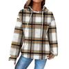 Damenmode Lockerer Kapuzenpullover Langarm Kariertes Sweatshirt mit Kordelzug Überschnittene Schultern und Tasche Print Top