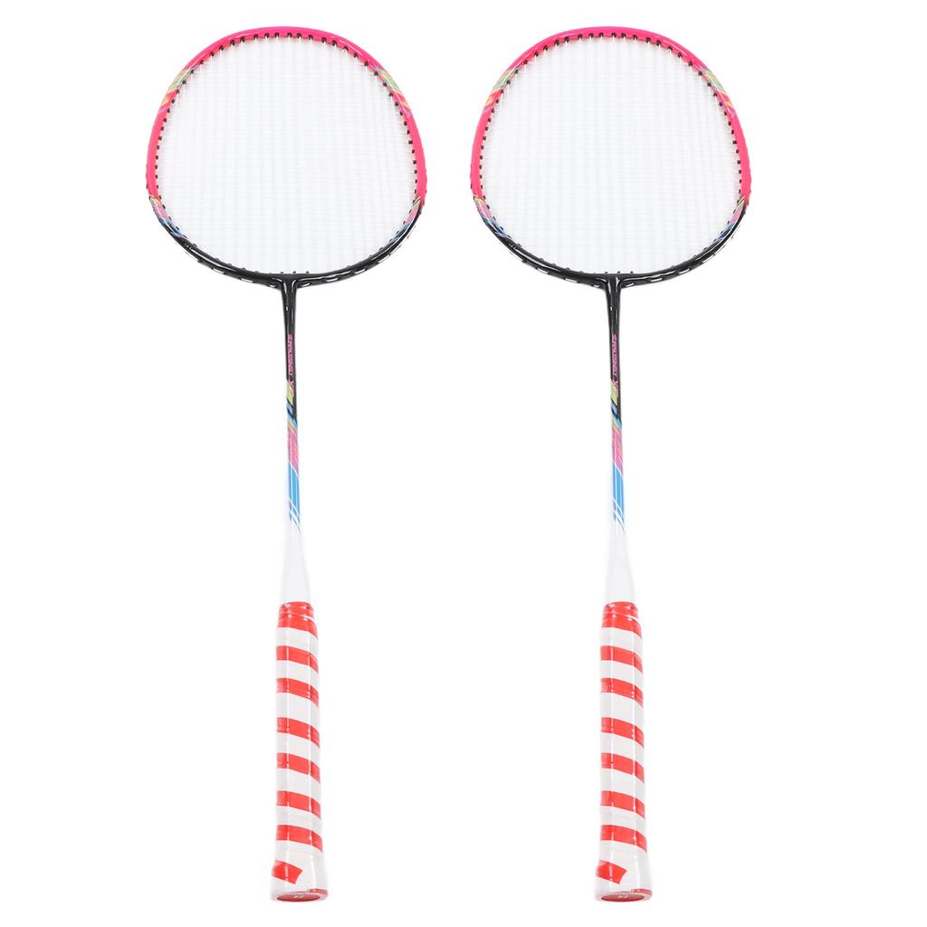 2 Stück Badmintonschläger Rosa Legierungsrahmen Großer Sweetspot Einteiliges Design Doppel-Badmintonschläger mit Aufbewahrungstasche