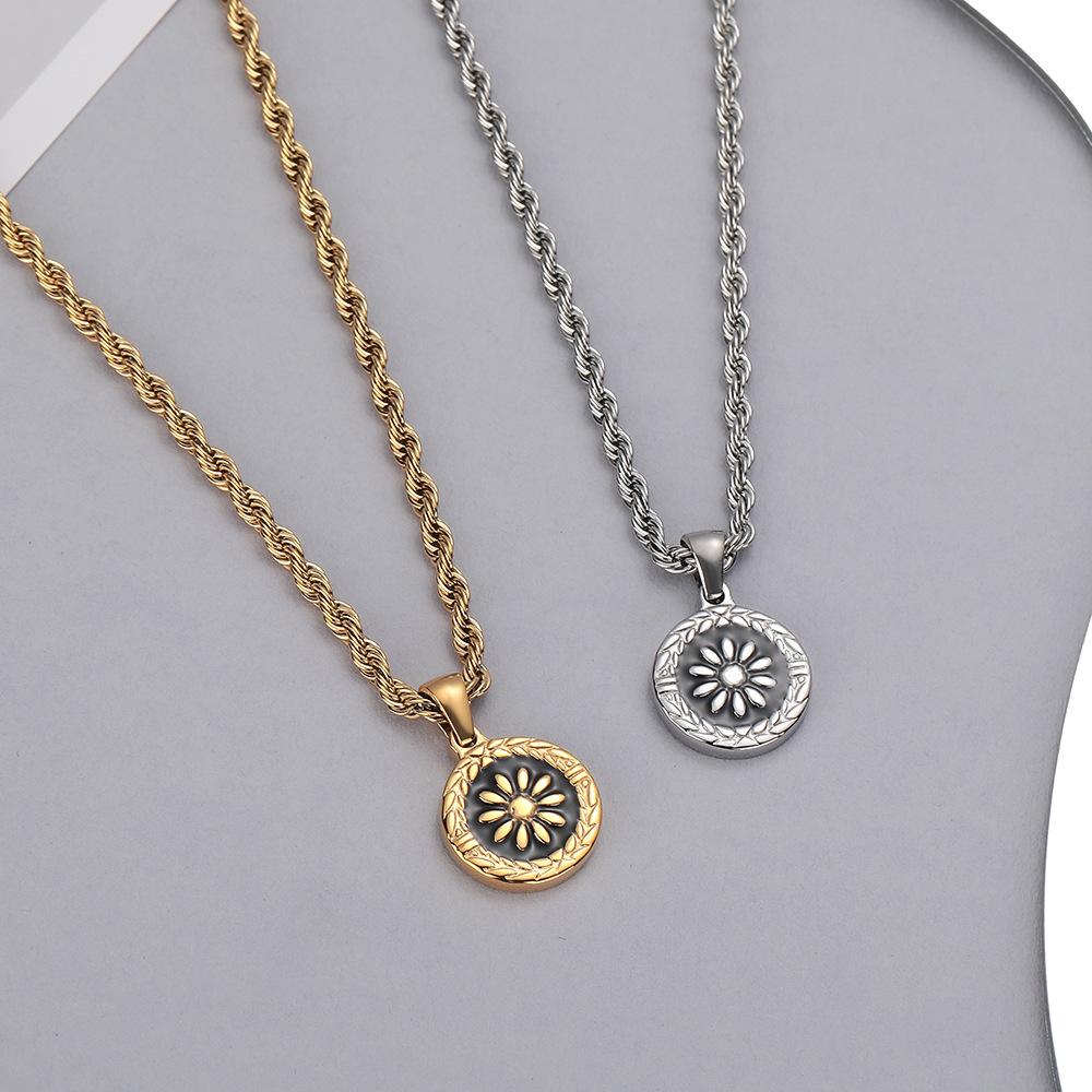 Goldene Runde Antike Münze Eingelegte Halskette Unisex High-End Vielseitige Pulloverkette Wasserdicht Schweißfest Nicht Verblassend